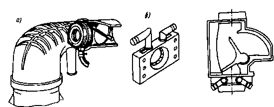 Соединение редуктора с трубопроводами циркуляции охлаждающей жидкости производится дюритовым шлангом, соединяющим отопитель салона с рубашкой цилиндра двигателя (см. рис. 3). Для установки тройника следует разрезать этот шланг и между разрезанными частями шланга закрепить тройник. Свободный боковой патрубок тройника соединяют со шлангом, подающим теплоноситель в нижний патрубок редуктора. Другой патрубок отопителя, соединенный шлангом с патрубком водяного насоса, также разрезают и концы шлангов соединяют с тройником. Боковой патрубок тройника шлангом соединяют с верхним отводящим теплоноситель патрубком редуктора.