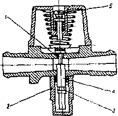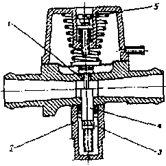 Отверните и снимите электромагнитный клапан 1. Отверните шесть винтов крышки 2 и снимите ее и диафрагму 3. Разъедините рычаг с клапаном 4. Для осмотра клапана удалите ось рычага. Негерметичность уплотнителя клапана может затруднять пуск двигателя, ухудшать работу в режиме холостого хода, а остановка двигателя может быть вызвана утечкой газа в подкапотное пространство автомобиля. Если давление во второй ступени выше атмосферного, то неисправность можно обнаружить включением зажигания. Газ при этом поступает в смеситель. Если давление ниже атмосферного (разрежение), в выходной полости редуктора происходит подсос воздуха из полости и газовоздушная смесь обедняется.