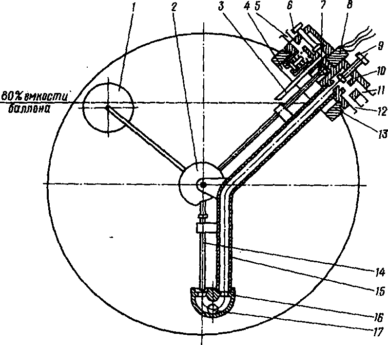 Газовая аппаратура состоит из баллона 1, фланца на обечайке баллона 2, к которому прикреплен блок запорно-предохранительной арматуры 3, назначение которого обеспечить: