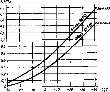 Изменение давления насыщенных паров Р смеси пропана и бутана в зависимости от температуры в баллоне показано на рис. 2.